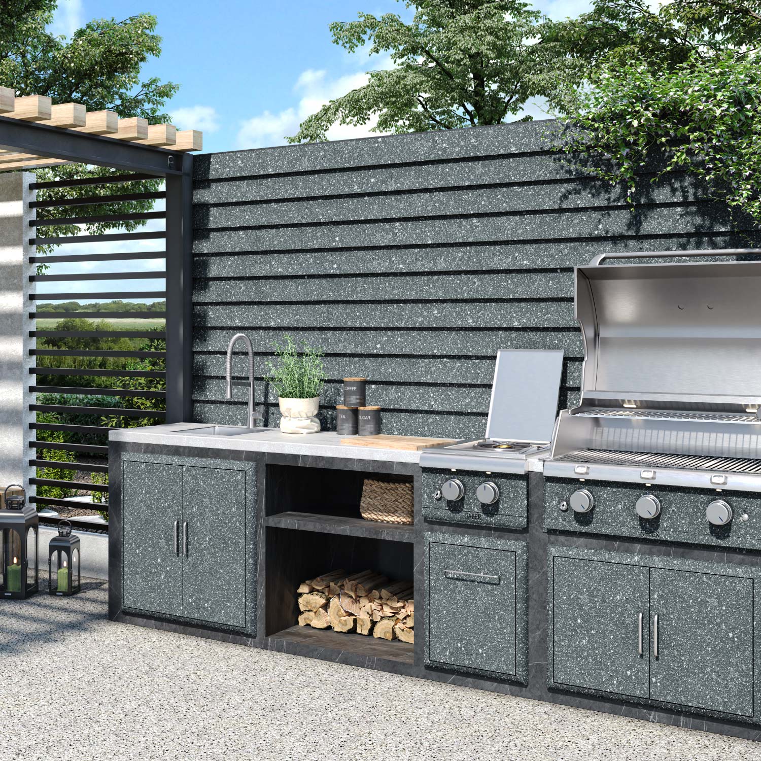 - Afsluitingen: Zet een statement met Infinity Spray Granite afsluitingen die de blikvanger vormen in je buitenruimte.